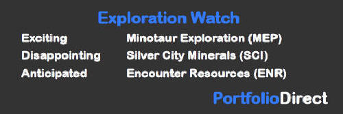Minotaur and its exploration earn-in partner Oz Minerals have defined a 2.7 km long anomaly 5 km north of the Eloise copper mine in Queensland from a ground electromagnetic survey. Two defined targets with responses stronger than those from the Eloise deposit have been identified at Iris North and Iris South. A hole in the south anomaly intersected 38 metres at 0.47% Cu from 166 metres including 4 metres at 1.65% Cu within a sulphidic breccia. According to the company, the results are “reminiscent of early intercepts of what is now the Eloise copper mine”.
