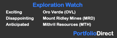 Mount Ridley Mines reported the results of a single diamond hole (MRD016) at its Mt Ridley project northeast of Esperance directed at a target 801 metres down hole. The hole encountered a series of weakly mineralised zones. A subsequent downhole geophysical survey identified an off-hole conductor at a depth of 650 metres which the company is planning to drill test.