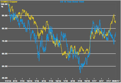 Since the middle of 2017, higher copper prices have come with falling yields. Rising yields have been accompanied by slightly weaker copper prices.