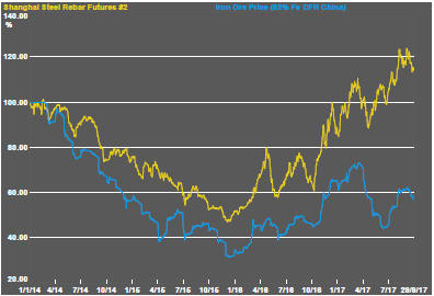Iron ore prices have appeared to turn lower in a seemingly leveraged response to a loss in steel price momentum.