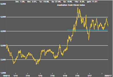 Australian gold-related equity prices have shown no significant net change though 2017 despite improved gold bullion prices.