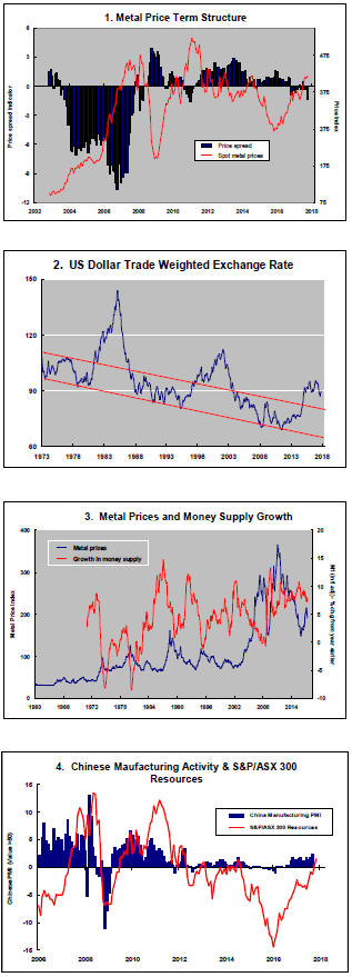Metal prices are affected by monetary conditions with a lag of several quarters so that there is no imminent threat from future winding back in monetary conditions but the prospective trajectory of monetary policy will be a source of eventual downward pressure on metal prices.