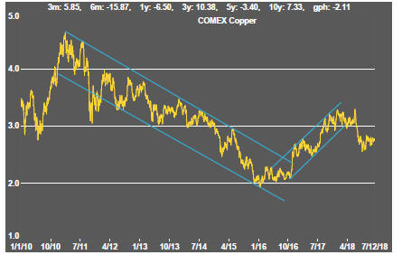 Copper price movements had been at odds with higher bond yields which would normally signal strengthening inflation and growth, both good signs for the metal markets. The divergence had intimated the possibility of a future resolution of the implied difference in opinion as the global growth trajectory became clearer. In the past week, the verdict appears to have favoured weaker growth and lower bond yields with, at best, stable copper prices.