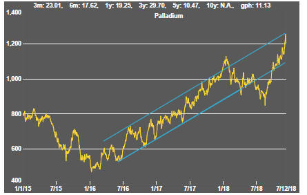 Gold and silver prices moved higher but platinum and palladium prices were little changed to slightly lower. Uniquely among the precious metals, palladium prices have resumed the upward trend evident in price movements since early 2016.