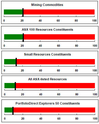 With a median decline in prices of ASX-listed resources companies through the cycle of 89%(and 30% of companies suffering a decline of more then 95%), the majority of stocks remain prone to strong 'bottom of the cycle' leverage in response to even slight improvements in conditions.