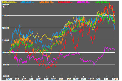 Tin prices have lagged conspicuously over the past year but have shown a similar rise to that of other metals since late in 2017.