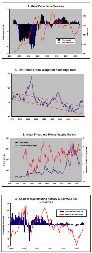 From mid 2014, the metal market cyclical position was characterised as ‘Trough Entry’ with all but one of the PortfolioDirect cyclical guideposts - the international policy stance - flashing ‘red’ to indicate the absence of support.