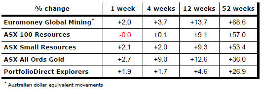The lower currency, along with greater optimism about the state of the world economy, continued to benefit commodity prices. Higher copper and iron ore prices benefited the leading stocks in the sector.