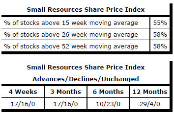The evident resistance to a move higher shown in the chart of the small resources share price index in the right hand panel is indicative of this challenge. One might have expected sector equity prices outside the leaders to have strengthened more markedly as the financial indicators showed a stronger appetite for risk.