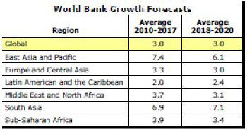 The World Bank growth forecasts portray a similar picture of slightly stronger and lower risk growth in the immediate future but, after that, little difference in the coming three years than the average over the past eight years.