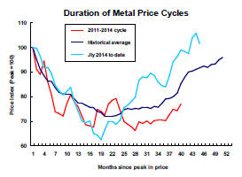 The level of metal prices is consistent with the historical average this far into a cycle.