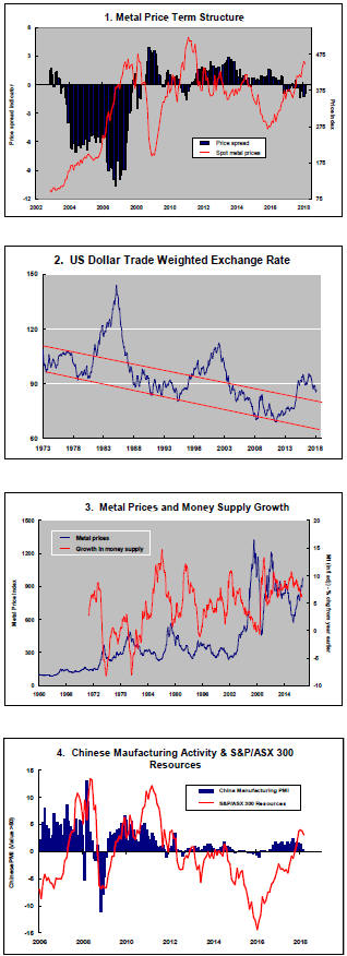 The greatest danger to a metal price cycle comes when monetary policy settings begin to tighten in response to higher inflation with an adverse effect on output growth and investment spending.