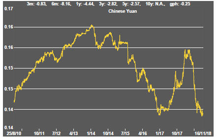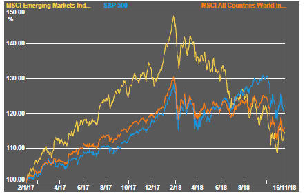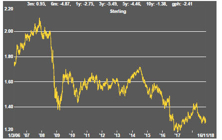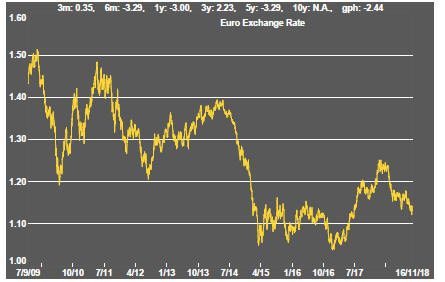 The upward bias to the US dollar has persisted with a negative effect on US corporate earnings. Deteriorating European growth prospects have weighed on the euro. Sterling has been pushed and pulled by news about progress toward a Brexit agreement and turmoil within the British Conservative Party precipitated by the content of the final agreement.