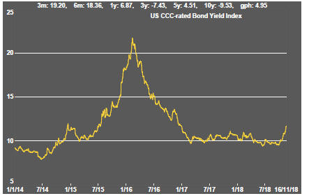 The upward movement in low grade corporate bond yields has become more pronounced. While yields are well below the cyclically high levels reached in 2016, the trend is negative for miners looking for US dollar funds in capital markets.