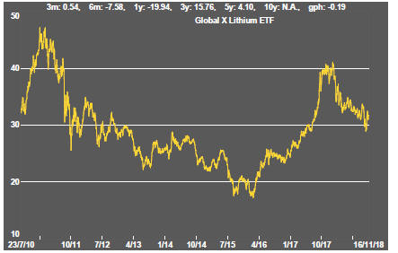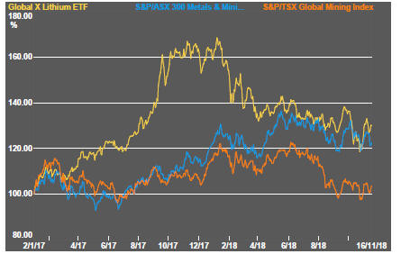 Movements in lithium related equity prices had been aligned more closely with overall sector equity prices in recent weeks with the lithium stocks tending to display a greater leverage to changes in market sentiment about the mining sector.