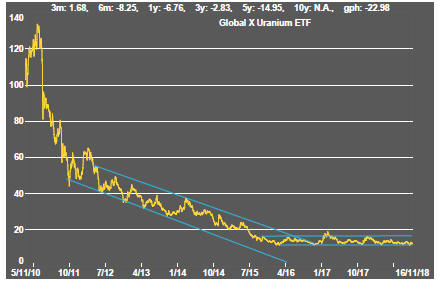 The uranium sector is in the midst of forming a prolonged cyclical trough as market balances slowly improve. Power utilities have been reluctant to re-enter the market for contracted amounts of metal to meet longer term needs although an upward bias in prices is now evident.