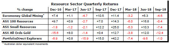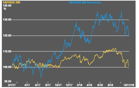 Resource sector equities have been affected adversely by the swing in investor sentiment although the impact has been moderated by the sector not having enjoyed an especially strong cyclical rise.