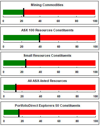With a median decline in prices of ASX-listed resources companies through the cycle of 89%(and 30% of companies suffering a decline of more then 95%), the majority of stocks remain prone to strong 'bottom of the cycle' leverage in response to even slight improvements in conditions.