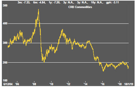 Still vulnerable cyclical conditions were aggravated in the second half of 2015 by a push from investors worldwide to reduce risk. Sector prices were pushed to a new cyclical low some 90 months after the cyclical peak in sector equity prices but these conditions were reversed through 2016 and 2017 although, for the most part, sector prices have done little more than revert to the 2013 levels which had once been regarded as cyclically weak.