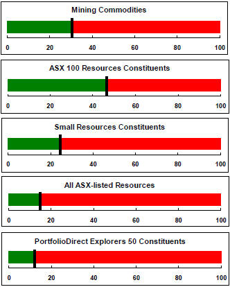With a median decline in prices of ASX-listed resources companies through the cycle of 89%(and 30% of companies suffering a decline of more then 95%), the majority of stocks remain prone to strong 'bottom of the cycle' leverage in response to even slight improvements in conditions.