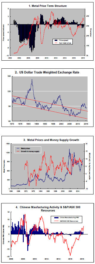 The greatest danger to a metal price cycle comes when monetary policy settings begin to tighten in response to higher inflation with an adverse effect on output growth and investment spending.
