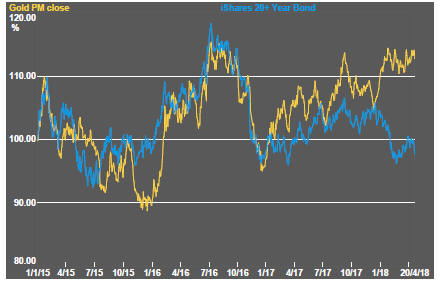 Gold bullion prices remained toward the upper end of their recent range despite the fall in bond prices which, more often than not, would signify a fall in bullion prices.