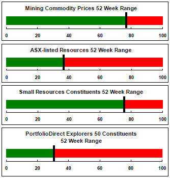 US precious metal equities traded higher after having been near the bottom of their medium term trading range. Australian gold equity prices remained close to the upper end of their trading range.