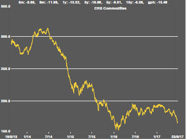 A 1990s scenario remains the closest historical parallel although the strength of the US dollar exchange rate since mid 2014 has added an unusual weight to US dollar prices.