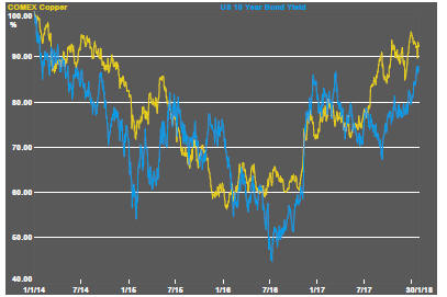 The combination of higher bond yields, which would normally signal rising demand for raw materials, and the weaker US dollar have helped support higher copper prices although the extent of the leverage has been moderate by historical standards.