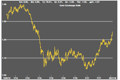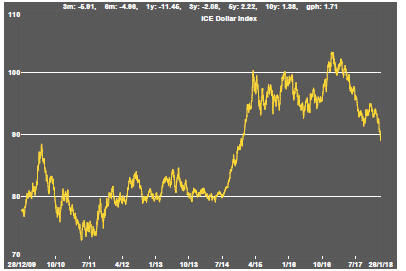Despite a more optimistic tone to commentaries about US economic growth and the prospect of further US interest rate rises, the US dollar has weakened. Such a move is not unusual during relatively buoyant market conditions as the role of the US currency as a safe haven is less sought after and capital flows into more risky envirnements.