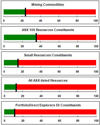 With a median decline in prices of ASX-listed resources companies through the cycle of 89%(and 30% of companies suffering a decline of more then 95%), the majority of stocks remain prone to strong 'bottom of the cycle' leverage in response to even slight improvements in conditions.