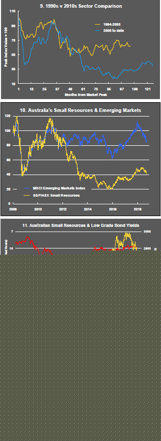 Still vulnerable cyclical conditions were aggravated in the second half of 2015 by a push from investors worldwide to reduce risk. Sector prices were pushed to a new cyclical low. These conditions were reversed through 2016 and 2017 although sector prices have done little more than revert to the 2013 levels which had once been regarded as cyclically weak.