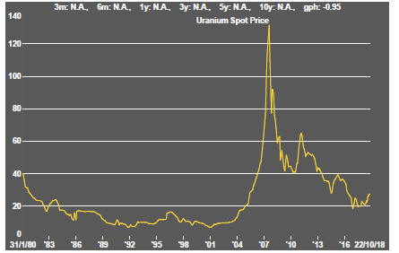 Slightly higher equity prices from time to time, in the hope of improved conditions, have not been sustained but could be repeated as speculation about improved future demand ebbs and flows. The effect of an announcement by Canadian producer Cameco to extend the duration of its previously implemented production cut gave the market a very slight but quickly lost lift.