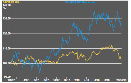 Resource sector equities were caught up in the sell-off with losses evident across all development phases of the industry.
