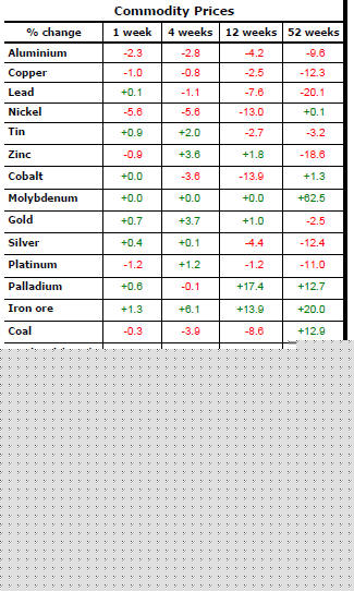 Iron ore prices continued to gain ground and, among the main mining commodities, are now one of the few sources of metal price strength over the past year.
