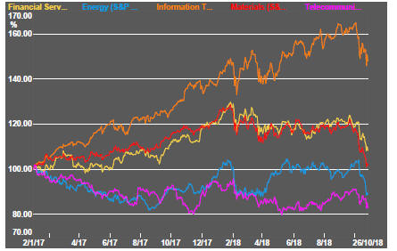 The equity sell-off gathered force during the week punctuated by strong intraday swings in prices. The emerging market index reverted to levels touched in the first quarter of 2017 as other markets gave up the gains which had been made during 2018.
