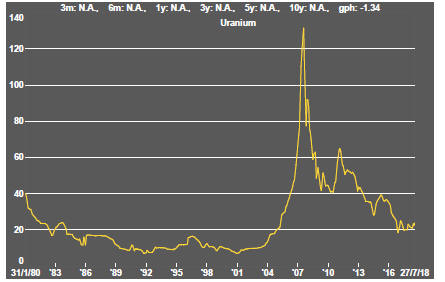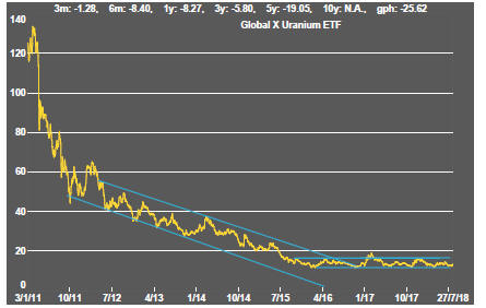 Slightly higher equity prices from time to time, in the hope of improved conditions, have not been sustained but could be repeated as speculation about improved future demand ebbs and flows. In the very near term, an announcement by Canadian producer Cameco to extend the duration its previously implemented production cut has given the market a very slight lift.