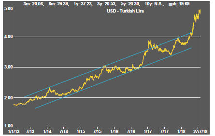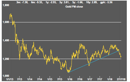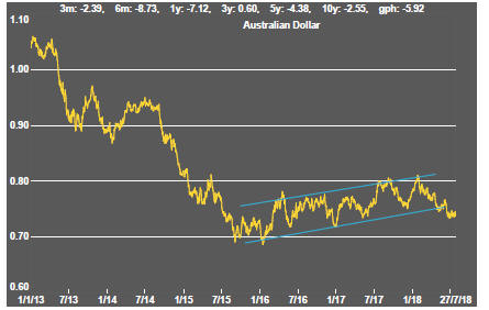 Initially individual differences in the causes of currency weakness had merged into a theme into which the Australian dollar has been pulled. The Australian currency appears to have fallen out of an upward trend which dated from early 2016 as it has become a victim of the potential trade disruptions.