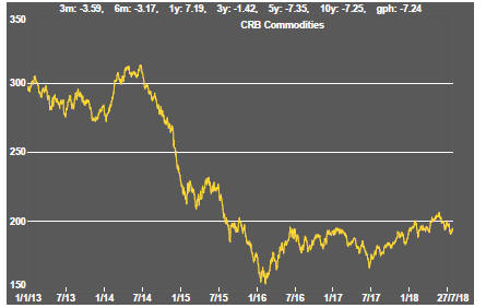 The general upswing in commodity prices since mid 2017 had been given added impetus by stronger crude oil prices.
