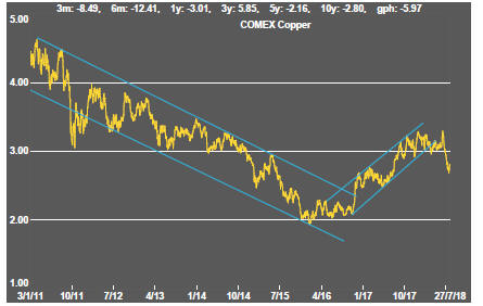 Much of the commentary about the decline in copper prices has focused attention on the impact of trade policy. There will have been some effect from this source but prices had shown little net change for the best part of a year amidst a clear loss of momentum before the trade policy issue began to gain traction.