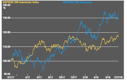 In the Australian context, industrial stocks have made gains against resources stocks over the past two months and continued their uptrend in the past week..