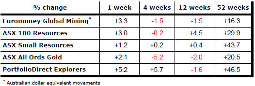 Sector momentum is less strong than it had been two or three months ago but equity prices showed surprising resilience in the past week with solid gains among both market leaders and the smallest exploration stocks in the sector.