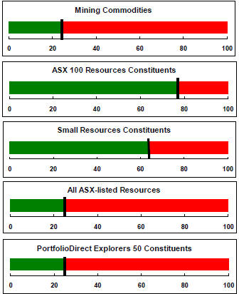 With a median decline in prices of ASX-listed resources companies through the cycle of 89%(and 30% of companies suffering a decline of more then 95%), the majority of stocks remain prone to strong 'bottom of the cycle' leverage in response to even slight improvements in conditions.