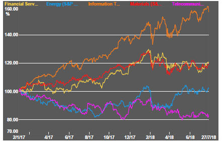 S&P 500 financial and energy sectors moved ahead despite the damage to the technology sector.