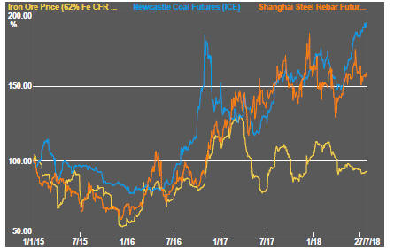 Coal prices continued to rise with strong demand growth from China where thermal coal volumes grew at their fastest pace since 2011. Indian port authorities have also reported strong growth in coal movements in the second quarter of 2018.