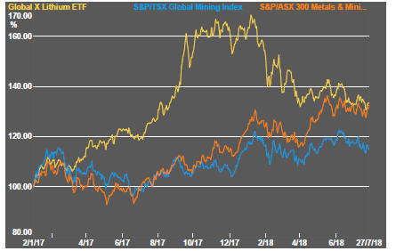 Movements in lithium related equity prices have been aligned more closely with overall sector equity prices in recent weeks.