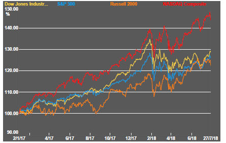 Smaller stocks within the US market lost ground despite the US government reporting that GDP growth in the second quarter of 2018 was stronger than in any quarter since 2014.