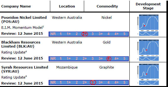 Stocks with relatively low ratings are regarded as more risky (i.e. less likely to achieve their exploration or development goals over a reasonable investment time horizon) than those with relatively high ratings.