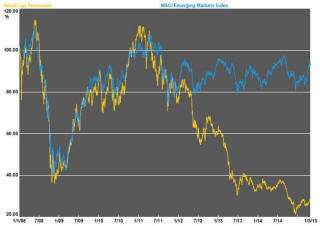 The US dollar which had been on an upward trajectory since June 2014 lost some momentum. The evidence of weakening economic data would have played a role. At the same time, the weaker currency would have helped allay some concerns about flagging corporate earnings.