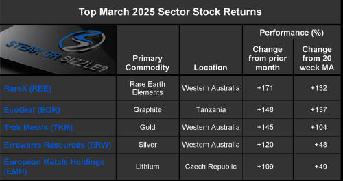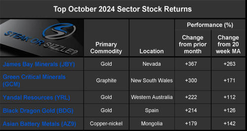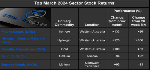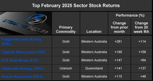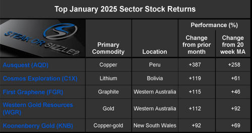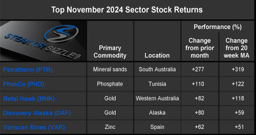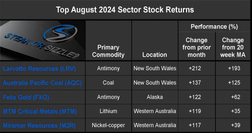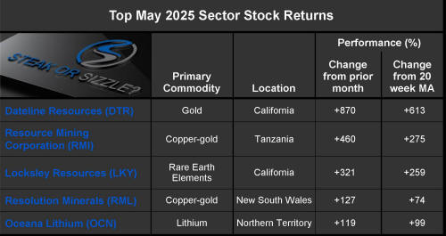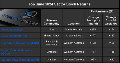 The 'Steak or Sizzle?' blog comments on the top five performing resources stocks.